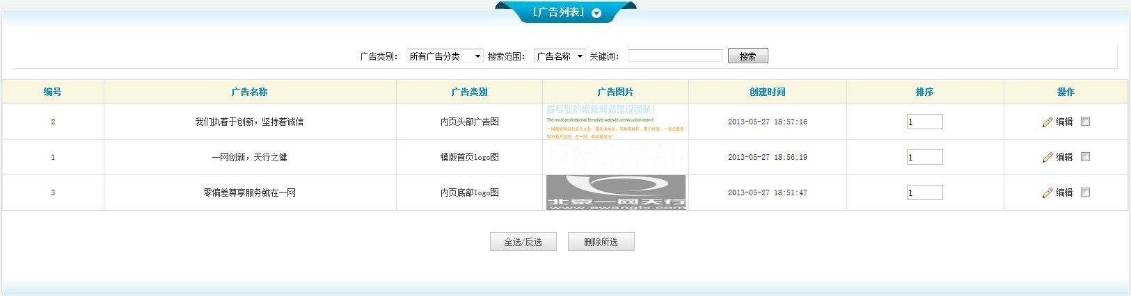 如果您相對(duì)已添加的廣告進(jìn)行管理,點(diǎn)擊廣告管理,會(huì)出現(xiàn)以下列表: