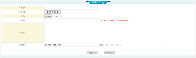 1、將您要添加的廣告名稱、廣告鏈接、廣告簡(jiǎn)介、創(chuàng)建時(shí)間(默認(rèn))填好。