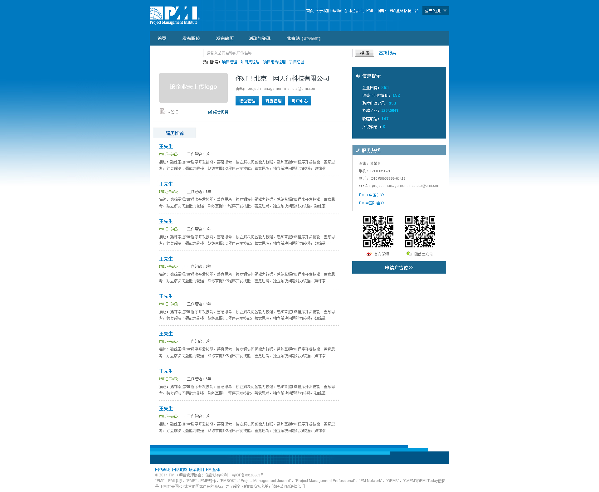 PMI-項目經理招聘服務平臺