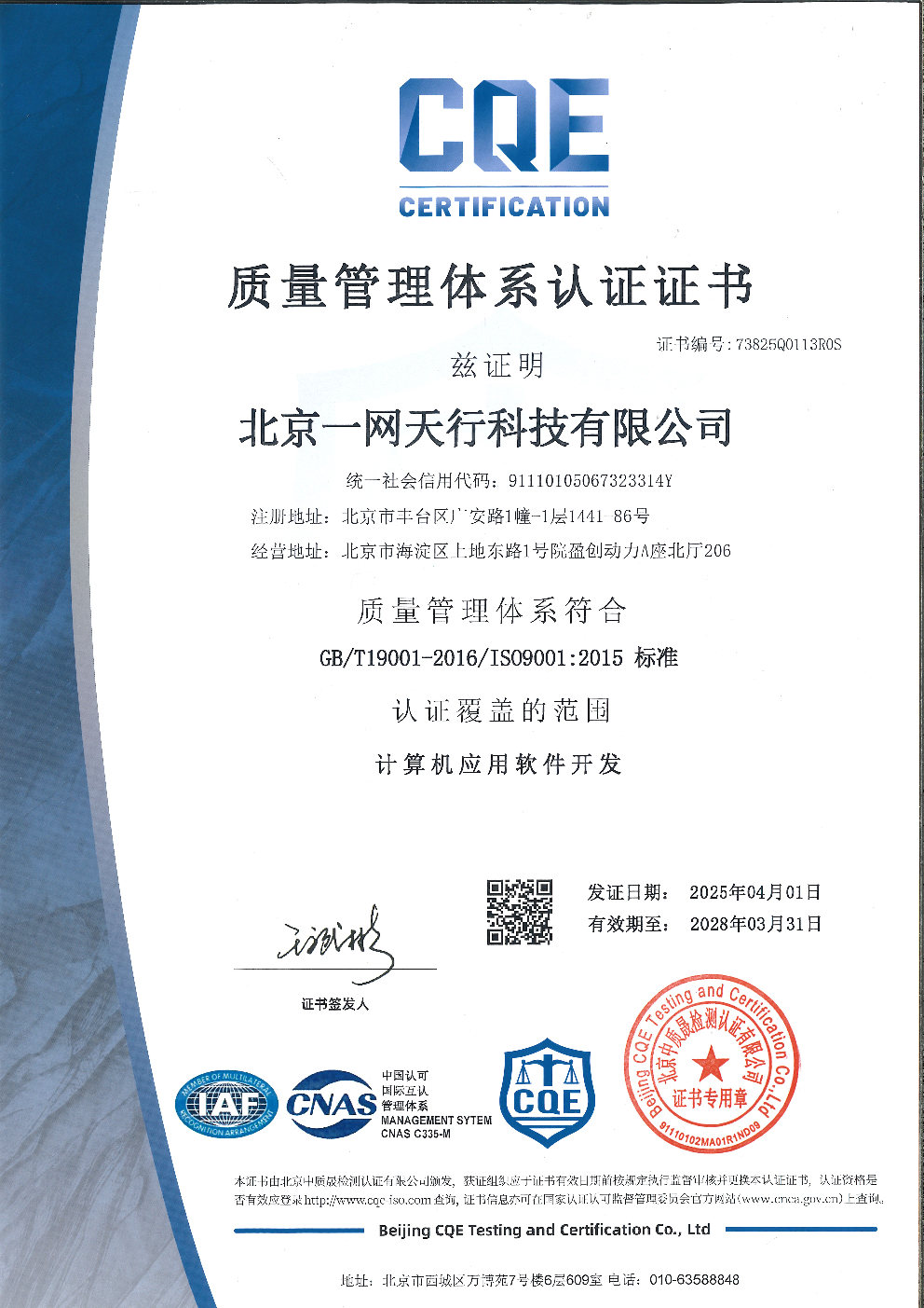 祝賀北京一網(wǎng)天行公司順利通過(guò)多項(xiàng)ISO體系認(rèn)證